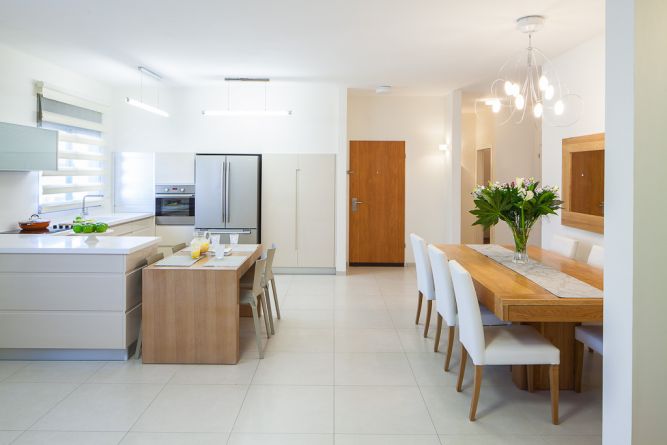 פינת אוכל מאורכת ומרווחת במיוחד, עיצוב אלגנטי ויוקרתי.