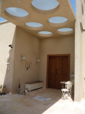 דלת כניסה מעוצבת ומרשימה בעיצובה. רחבה מאד ובגוו עץ מיוחד.