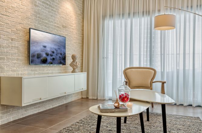 בריק לחיפוי בשילוב רצפת אבן טבעית בעיצוב יוקרתי.