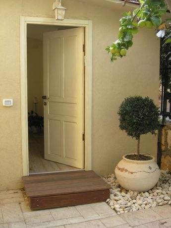 כניסה לקליניקה הוליסטית שתוכננה ועוצבה על ידי בחצר ביתה של המטפלת בראש העין.