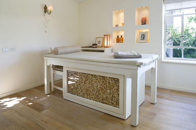 מיטת הטיפולים תוכננה ועוצבה על ידי ובוצעה על ידי רהיטי פרובנס ברשפון. המיטה תוכננה כך שמצד אחד פונה אל הכניסה והחזית שלה בנוי מעץ וזכוכית שמכיל פרחים. מהצד השני, הפונה אל הקיר תכננתי מגירות אחסון בהן ניתן לאחסן את השמיכות, מגבות ועוד.