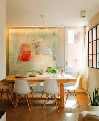 פינת אוכל ביתית וחמימה קלאסית וצעירה .