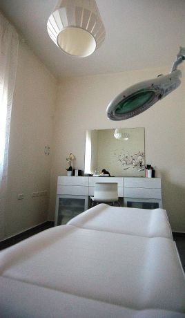 פלטת הצבעים הניטרלית שנבחרה לעיצוב החדר מבליטה את מוצרי האיפור הצבעוניים ותומכת באווירה מרגיעה הנדרשת מקליניקת טיפולים.