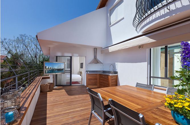 מרפסת מרשימה עם ריצוף דק טיק.