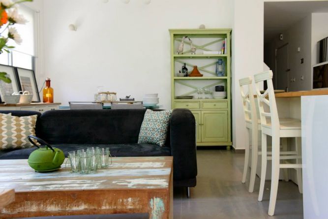 דירת גן ברחוב שינקין, גבעתיים. סלון מעוצב, פרטים-סטודיו לאדריכלות ולעיצוב