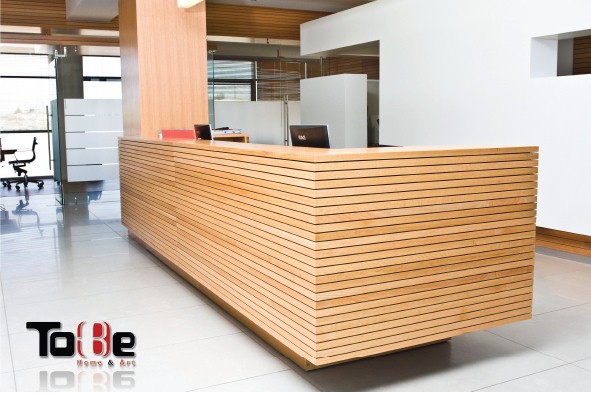 דלפק קבלה מרחף עשוי לייסטים של עץ מלא אלון.