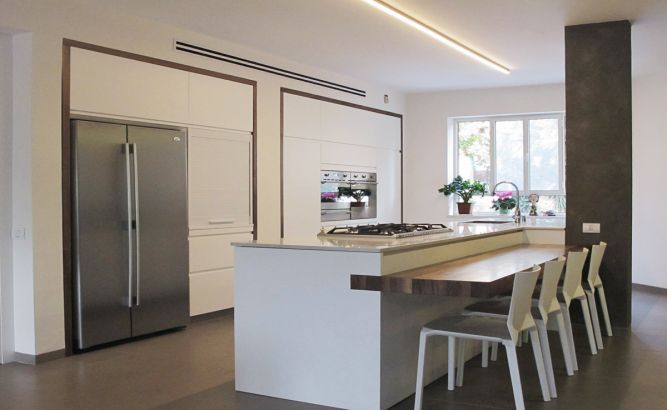 19 תמונות באתרמטבח בשילוב עץ אגוז, בטש מעצבים
