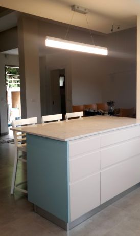 האי תוכנן להיות המשך של המטבח, יושבים בו נהנים מהנוף בחוץ.