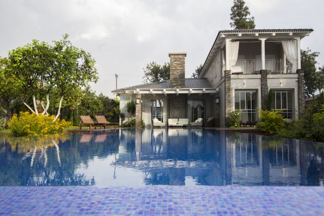חצר אחורית לבית פרטי הכולל בריכת שחייה וחצר מפנקת