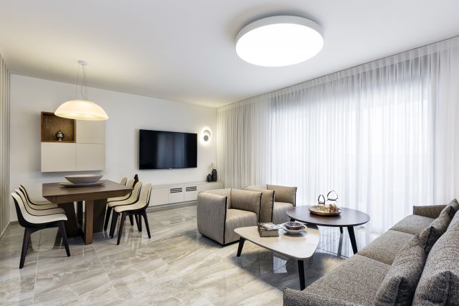 שדרוג חלל מגורים בדירת קבלן סטנדרטית במגדל מגורים במרכז,