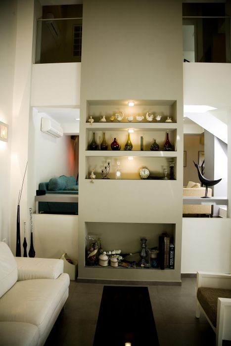 סלון עם נישות גבס מוארות, בית טליה - סיגל כהן קריספין יפעת סלומון אדריכלות ועיצוב