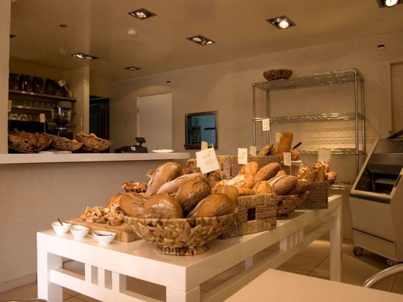 'פאטיסרי' בא?זו?ר, מבט אל 'בר הלחמים', דלפק המכירה ופורסת הלחמים.