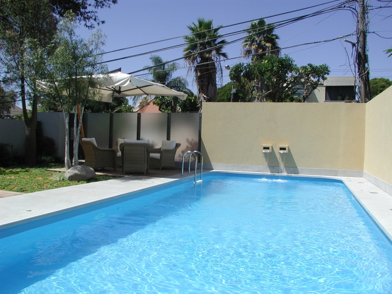 בריכה בחצר בית פרטי בתכנון נורית לשם (צילום: אורי סיון)