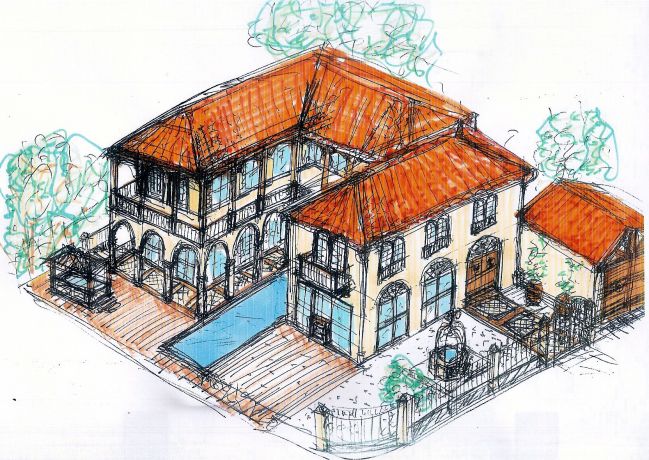 סקיצת בית פרטי בתכנון אדריכל נסטור סנדבנק