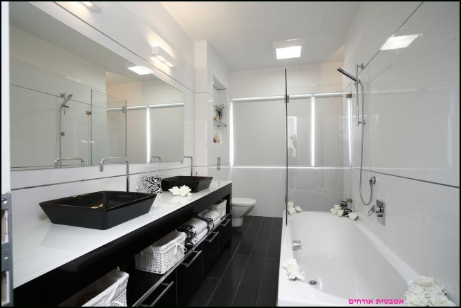 עיצוב חדר אמבטיה בשחור לבן אמבטית אורחים
