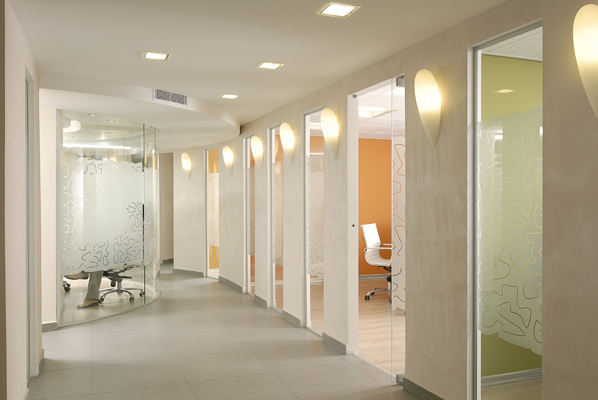 מסדרון לחדרים-כל חדר צבוע בצבע בגוון שונה מאותה משפחת צבעים