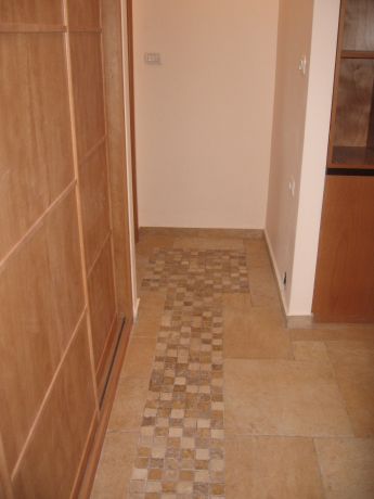 מבואת כניסה, רצפה משולבת , רצפת אבן משולבת בפסיפס אבנים קטנות, בגוון טבעי.