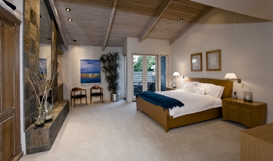 חדר שינה מרווח, סגנון כפרי, חלל גדול, קורות עץ בתקרה.