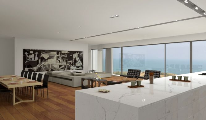 הדמיית מחשב חלל מגורים בתכנון אדריכל יואב אנדרמן